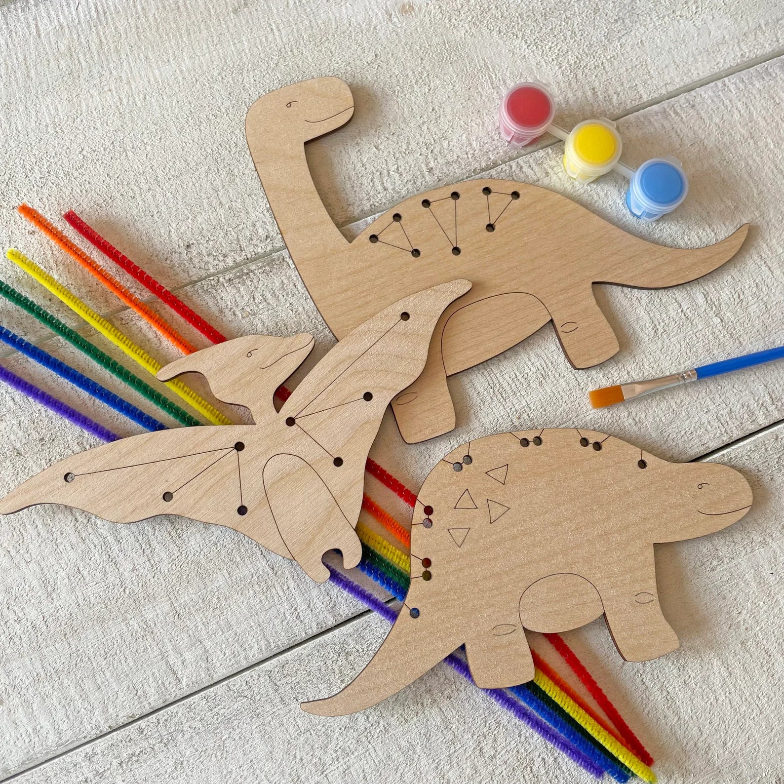 - Three different wooden dinosaurs
